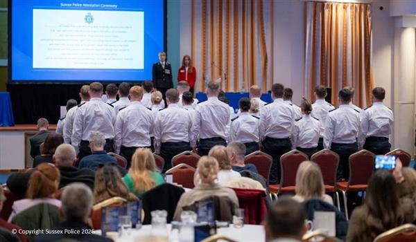 We have welcomed our newest cohort of police officers into the force. A total of 55 new Police Constables and Detective Constables were attested at a ceremony to take their oath, accompanied by their friends and family to celebrate this pivotal moment in their policing careers. One of the new recruits was inspired to join the force after he was violently assaulted and was so impressed by the compassionate and professional response, he received from police officers who responded and were first on scene. He said: โThis experience was a turning point in my life. I had always wanted to join a uniformed service, but that night when I was assaulted gave me a clear purpose: to join the police and make a positive difference, just as those officers did for me." Sussex Police continues to recruit for police officer and detectives. Whether you're seeking a dynamic frontline position, or a vital supporting role behind the scenes, we provides countless ways to make a difference. To find out more about the roles and to apply